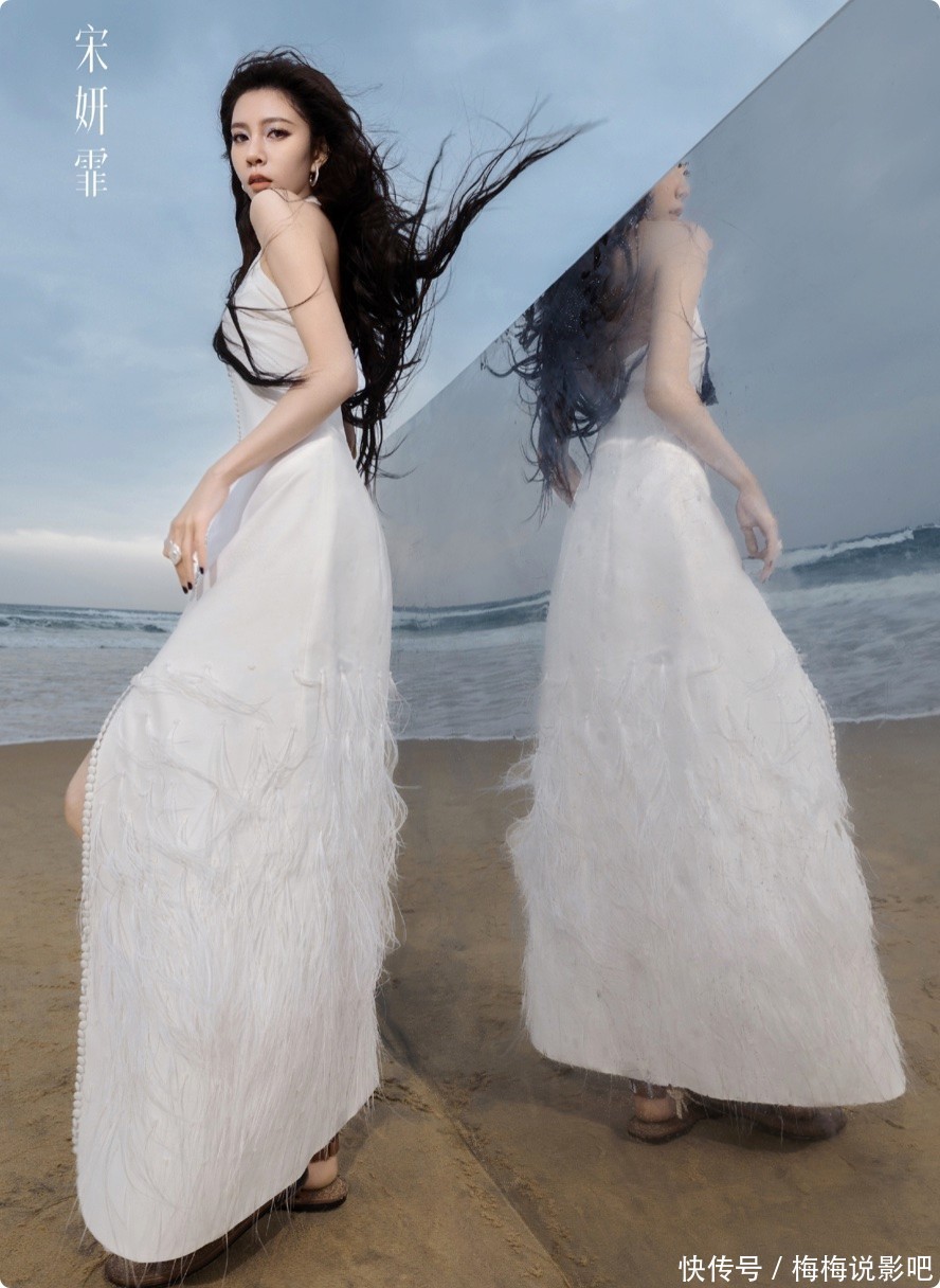 而大片里的宋妍霏,身穿露背吊带裙,及腰的长发被风吹乱,她侧身面临镜头,纤细的胳背,更显肩窄背薄。