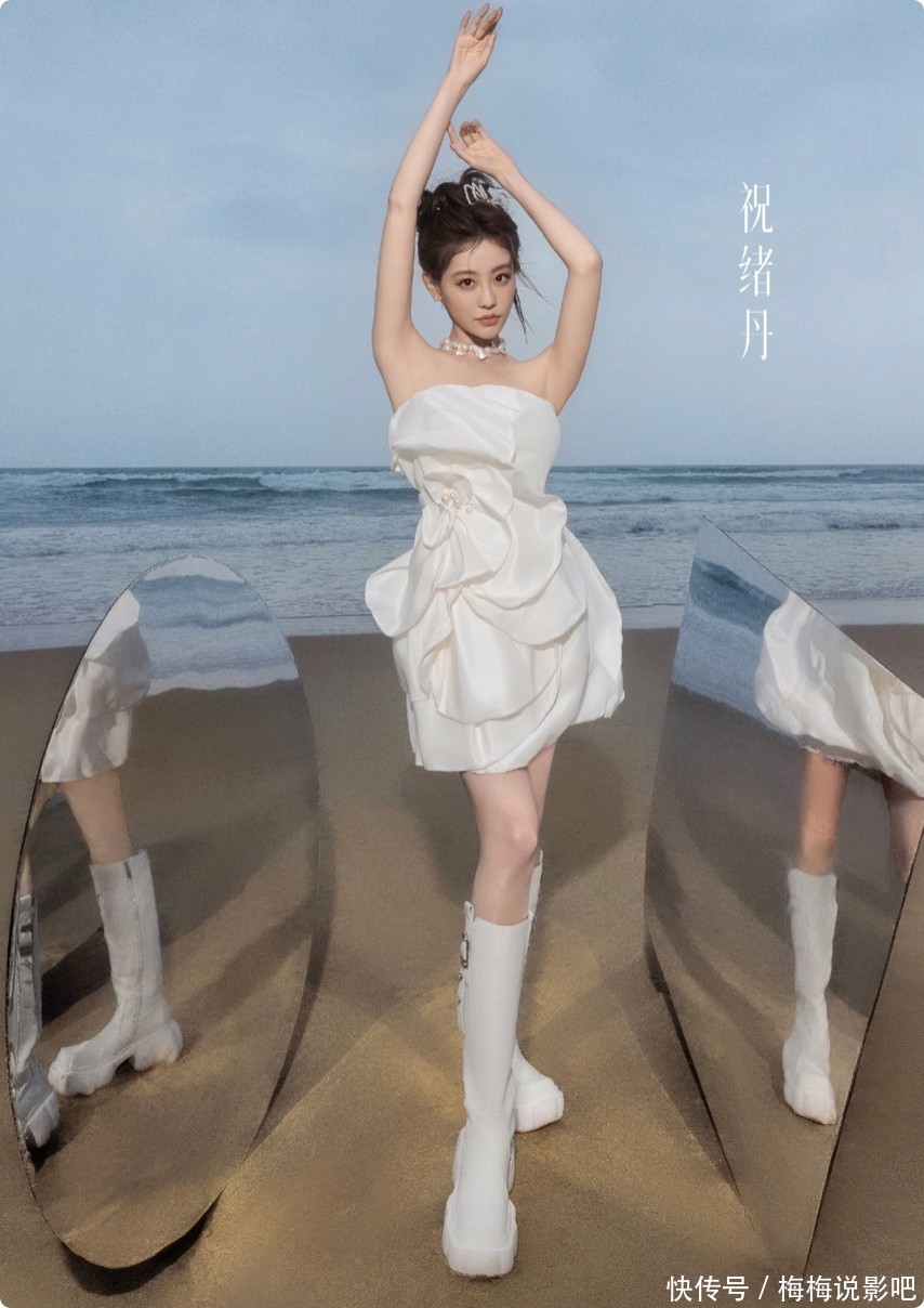 MV录制中,祝绪丹的造型就有种小萝莉的嗅觉,而在大片中,她亦然零丁白色的短款服装。
